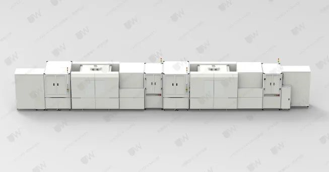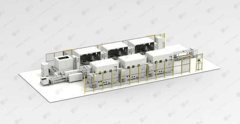UW Laser fuel cell bipolar plate bonding production line is equipped with automatic loading and unloading system, intelligent glue supply system, visual positioning system, precision bonding system, pressure curing system, intelligent glue control system, automatic glue removal system, air tightness. It has multiple functions such as the intelligent detection system, the repeatability of the fit is ≤ ± 0.05mm, and the detection accuracy of the glue type is ± 0.001mm, which effectively solve the problems of the low efficiency and poor consistency of bonding between the anode plate and the cathode plate of the graphite plate of the fuel cell.
