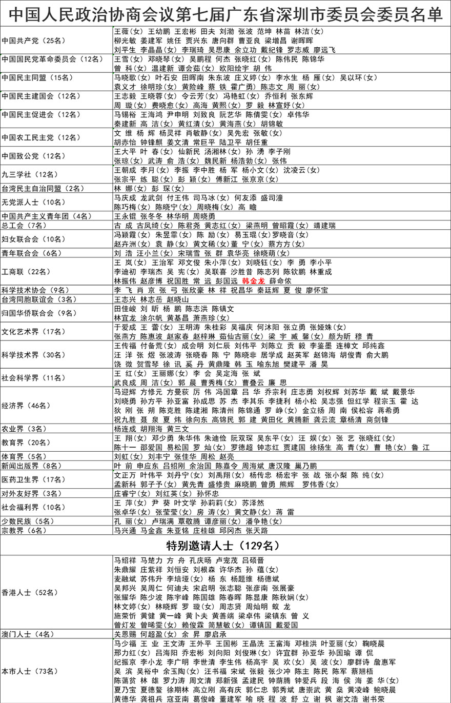 2021年4月25日,中国人民政治协商会议广东省深圳市委员会召开第六届三十三次常委会议。会议协商产生了新一届深圳市政协委员名单。七届市政协委员名额设置510名,常委会组成人员名额设置102名。市政协七届一次会议安排委员504名,常委100名,其中留任委员202名,新委员302名,leyu.乐鱼(集团)智能科技股份有限公司网站董事长韩金龙先生当选第七届深圳市政协委员。