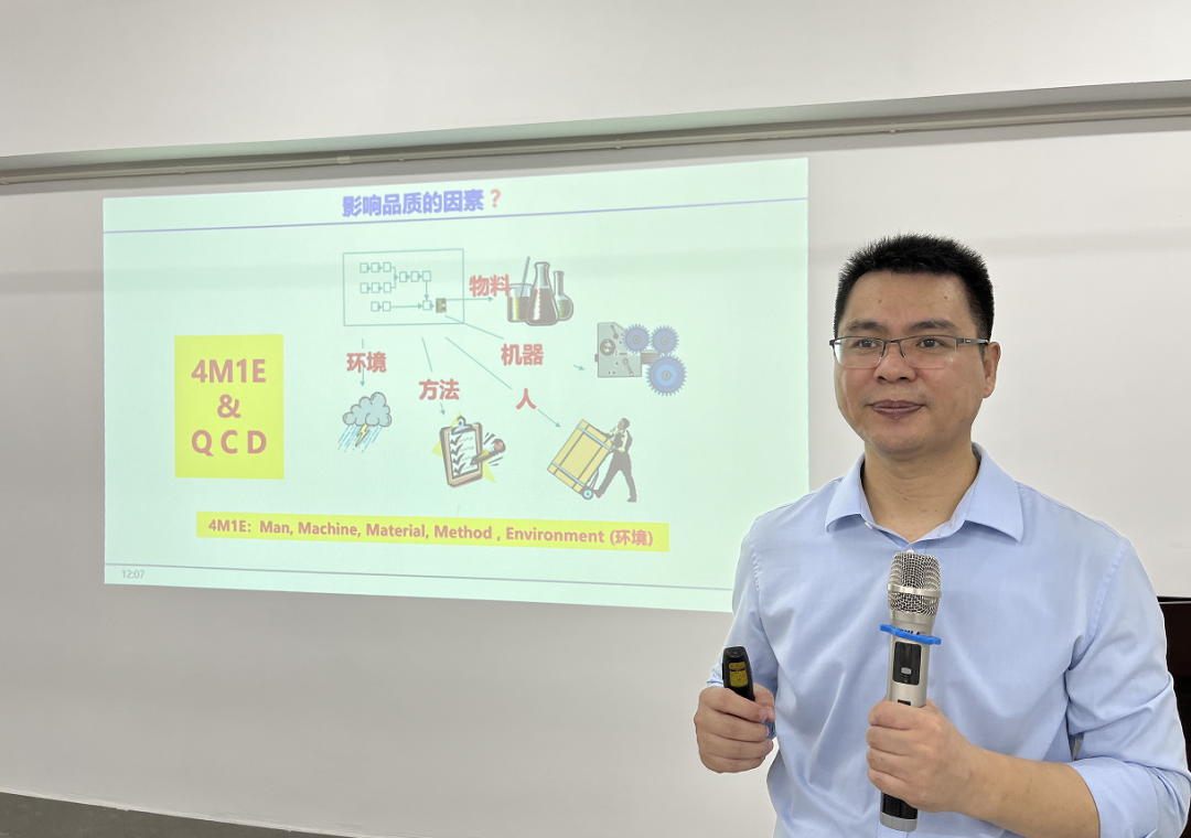 此次班组长培训邀请到了郑熙权老师,郑老师是深圳凯盛顾问咨询机构高级顾问、深圳市总工会职工继续教育讲师,拥有十多年丰富的生产工作与精益生产培训授课经验,培训现场他幽默风趣地为班组长们分享了制造业生产管理的各种实用案例。