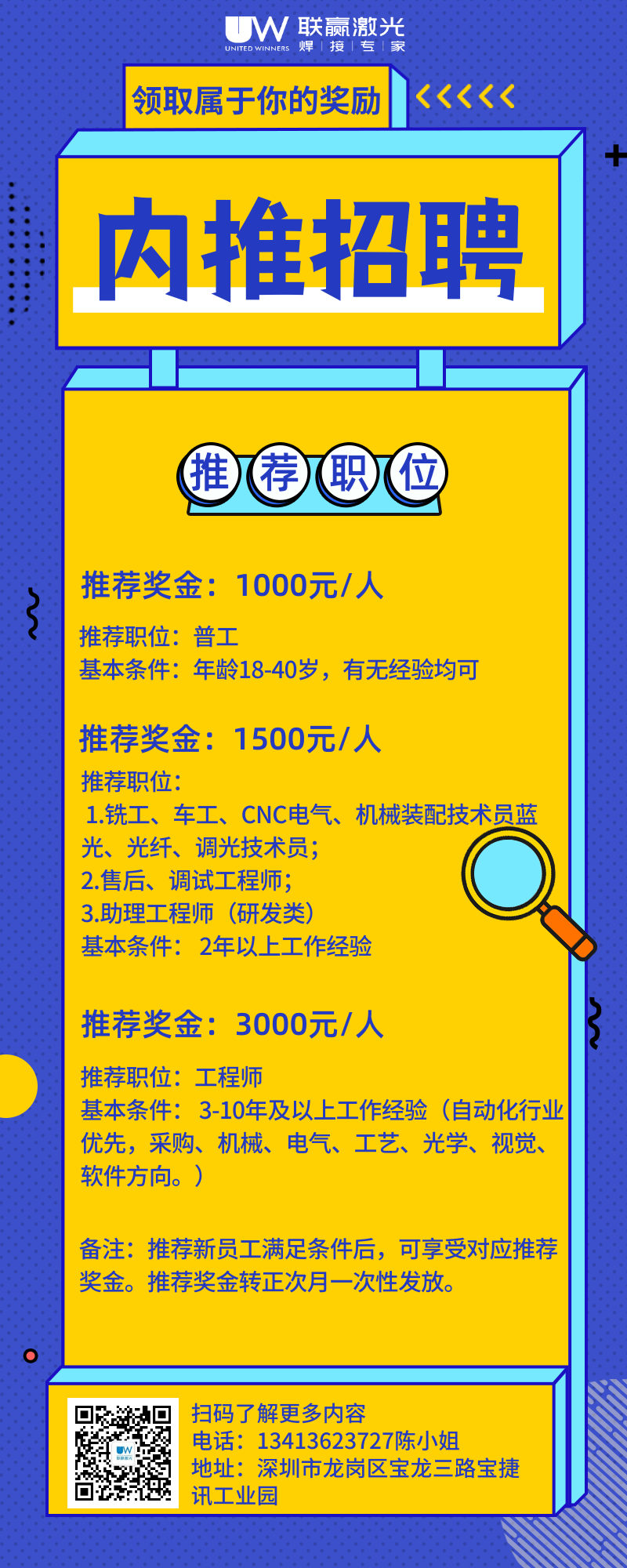 乐鱼leyu激光始终坚持联合共赢的企业价值观,重视每个岗位人才的发展渠道,给予多种培育和晋升机制。