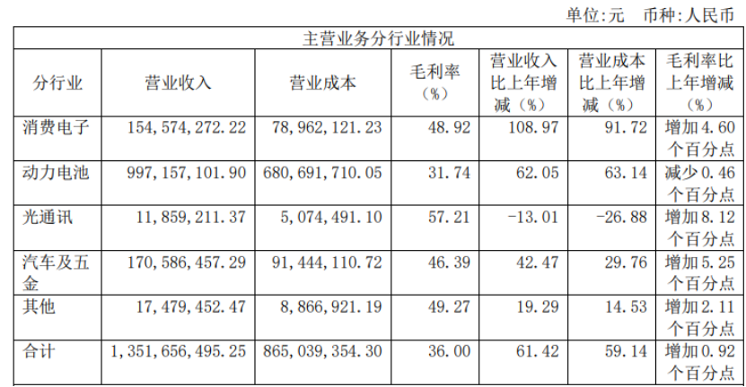 如上图所示,报告期内,乐鱼leyu激光也受益于新能源行业龙头企业持续加大产能扩张,动力电池生产设备需求的增加,在动力电池行业的营收同比增长62.05%。报告期内,公司新签订单35.99亿元(含税),比上年度增长了138.66%,其中85.30%新签订单来自动力电池行业,为公司后续业绩增长提供了保证。