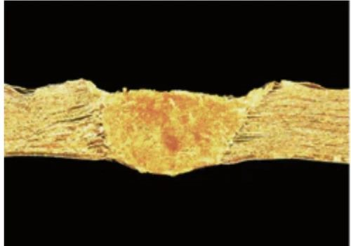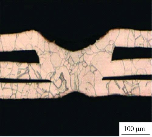图8   34个堆叠的铜箔(每个厚度11µm)连接焊接之间的接头横截面