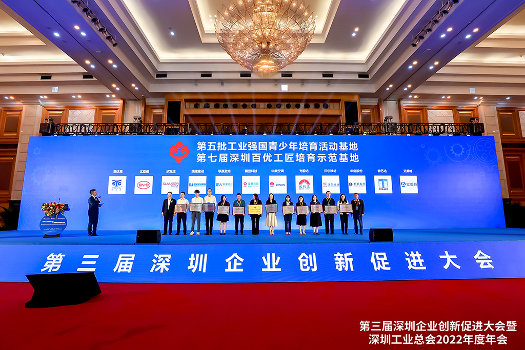 春风浩荡满目新,工业聚力向未来。3月10日,第三届深圳企业创新促进大会暨深圳工业总会2022年度年会在深圳五洲宾馆隆重举行!中国工程院院士李培根教授、深圳市原副市长唐杰等重要嘉宾及工业企业代表近千人齐聚一堂,为深圳工业制造高质量发展建言献策,把脉数智化未来。leyu.乐鱼(集团)智能科技股份有限公司网站作为本次大会受邀嘉宾,凭借在工业领域匠心智造和卓越工匠培育方面的突出成绩,成功荣获“深圳工匠培育示范单位”殊荣。