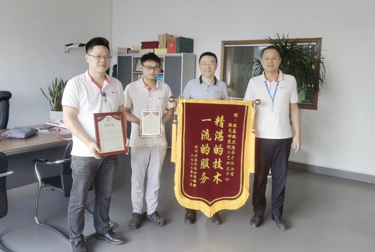 为保证客户节点要求,团队成员主动放弃节假日及其它夜间休息时间,无所畏惧潜心研究、加班加点攻克难题、反复试验和优化,全力配合亚泰光电,最终成功解决了客户项目中的种种问题。该团队认真主动、积极探索、精心服务,按质、按量、按时完成任务的拼搏精神和敬业精神,得到了客户的高度认可。