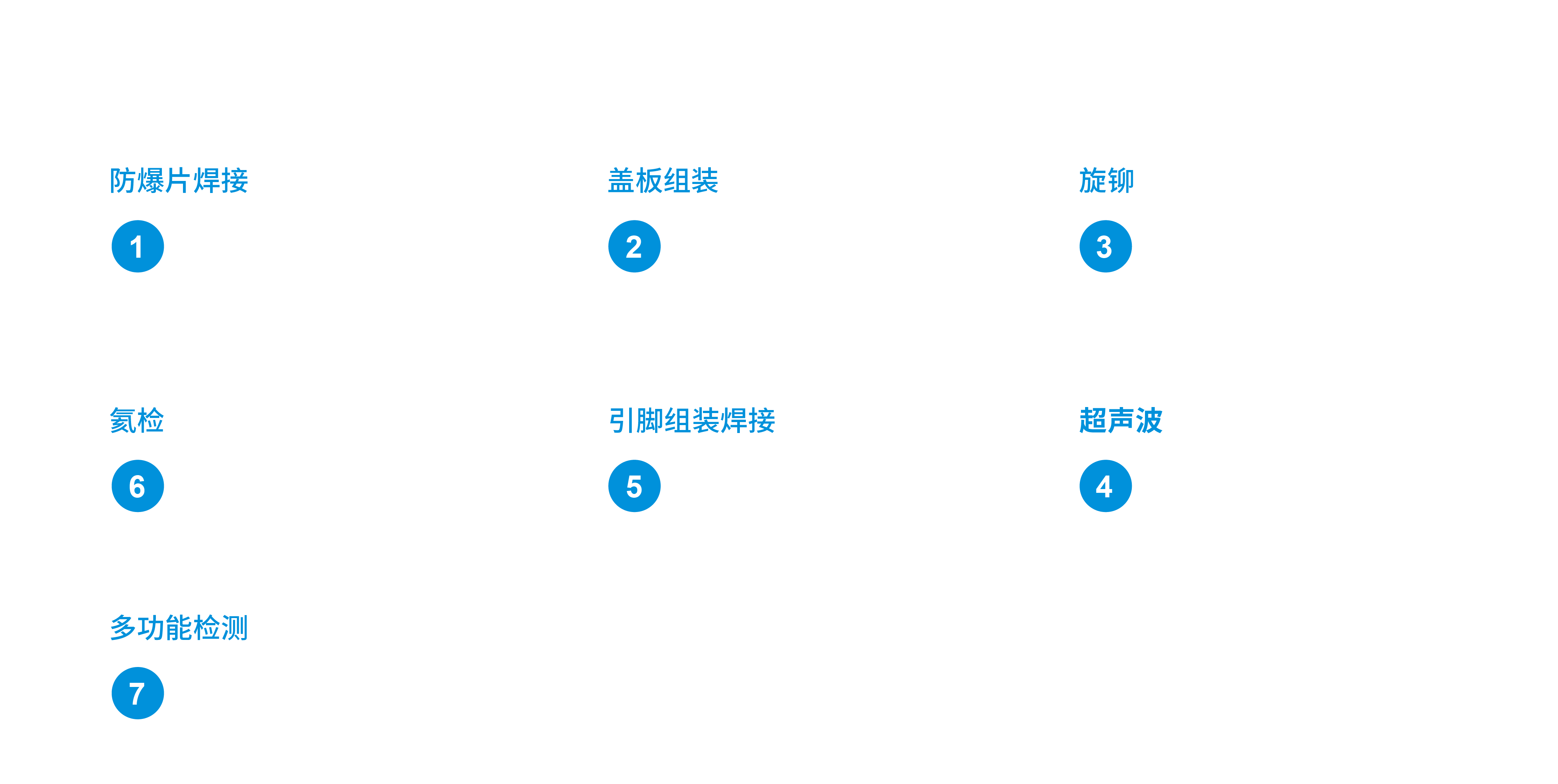 用于动力电池盖板,主要机型有防爆阀焊接、盖板组装、盖板旋铆、超声波焊接、引脚组装焊接、氦检(气密检测)、电检、贴膜。